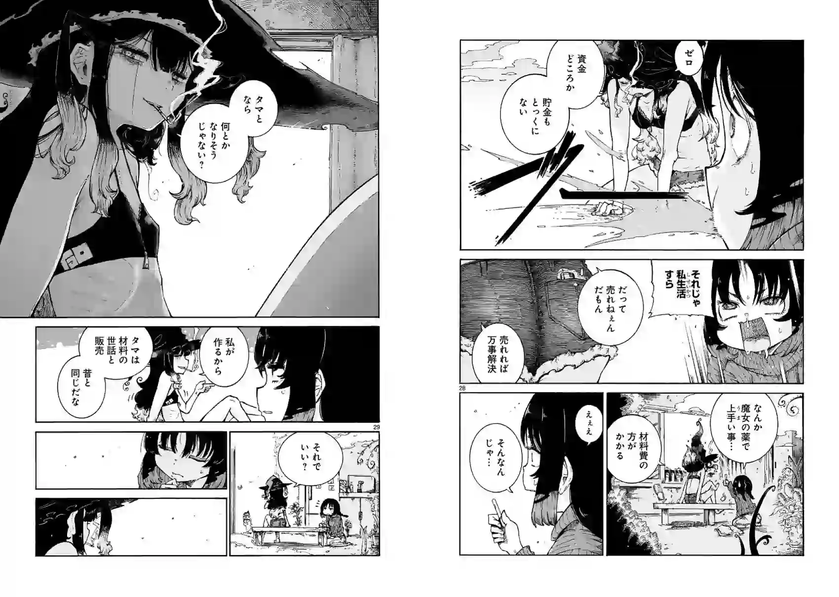 - あらすじ:遥か昔、才ある魔女シエンは、魔女狩りから弟子タマを逃がし、姿を消した――。 そして、数百年後が経ち、二人は現代「日本」でついに再会する!! だが、かつての面影はなく、窓辺で煙草を燻らせる”ダウナーな魔女”がそこにいた…⁉︎ しっかり者のタマと、無気力なシエンが繰り広げる、堕落的日常コメディ!!