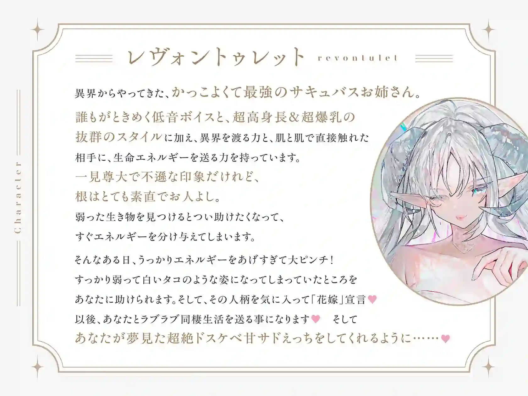 「さいつよサキュバスお姉さんと『超絶愛され犯され甘やかしラブラブ同棲生活』する百合音声、発売します!」より
