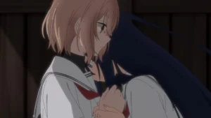 そして、そうした真面目な役割である事は勿論、”比名子のためになるならば気に食わない汐莉に比名子の事を託す”、”汐莉は気に入らないけど、比名子に望まれると汐莉と仲良くする”といった面もあり、この3人は単純な三角関係にならないのが本作の百合の味わい深い点ですね。