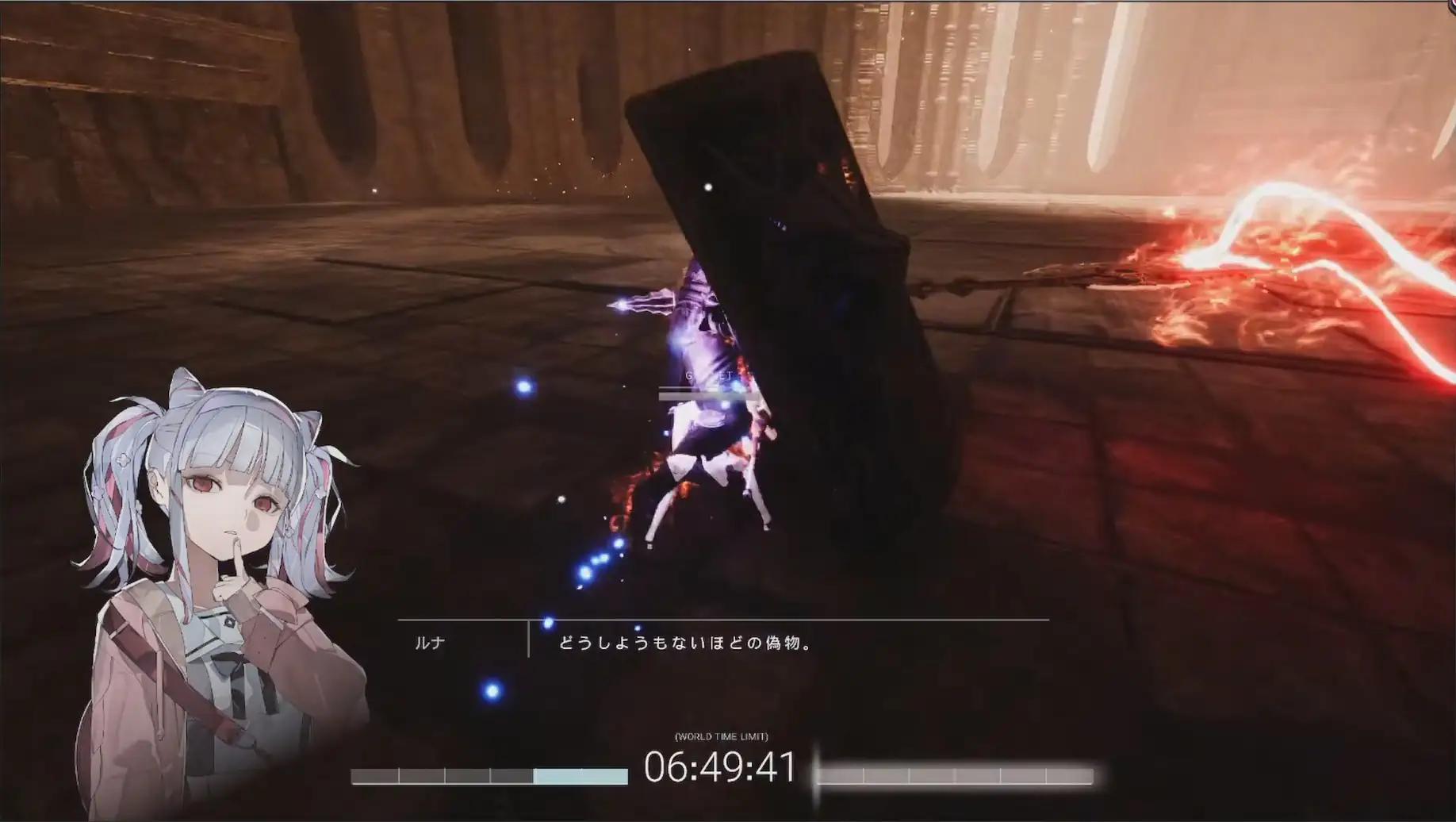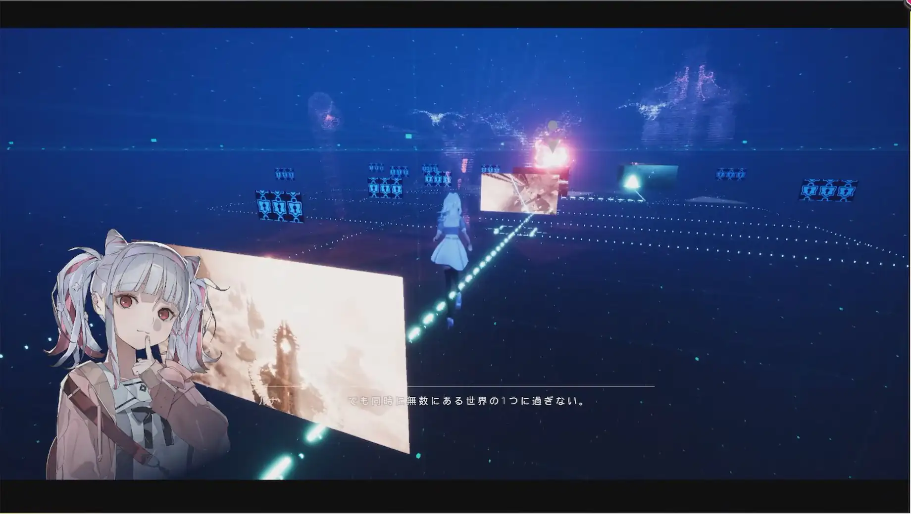 まず百合要素に直結するストーリー面ですが・・・今回のプレイ動画を見る限り、主人公(”ソラ”という存在である可能性が高いが、明言はされていない)が平行世界の自分を打ち倒し、ヒロインである”ルナ”に取っての本物になるための物語という印象でした。