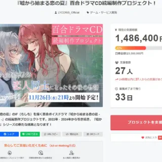 ニュース記事百合ボイスドラマ「嘘から始まる恋の夏 – Parallel Palette -」続編制作のためのCF企画ページが公開! ゲーム本編と異なるルート・・・薫と深玲とのルートを描くボイスドラマ「嘘から始まる恋の夏 - Parallel Palette -」の続編を制作するためのCF企画ページが公開されています! 2025.11.23 0ニュース記事音声作品ニュース系記事音声作品系百合ニュース あ~お行
